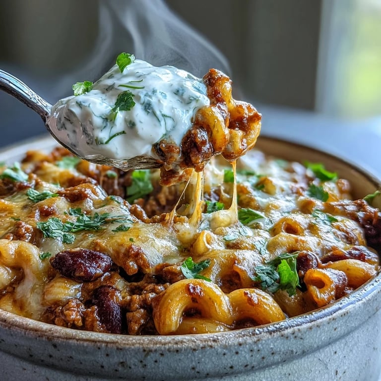 Serve this hearty chili mac in deep bowls with a side of salty tortilla chips or warm cornbread. The cool creaminess of a sour cream dollop balances the warm spices perfectly, while fresh green onions add a necessary bite of brightness to every spoonful.
