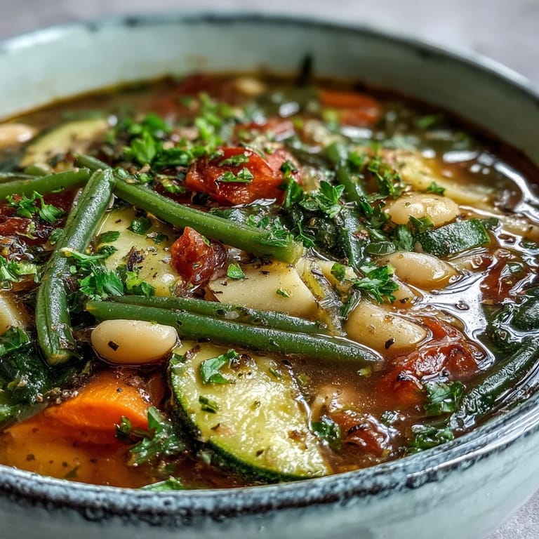 Save My neighbor Maria taught me that minestrone isn't about perfection, it's about generosity. She'd throw open her kitchen door on gray afternoons and start chopping vegetables with the kind of rhythm that made it look easy, humming Italian songs I couldn't quite place. The first time she let me help, I realized the soup wasn't a recipe she followed, it was a conversation between her hands and whatever was in season. Now whenever I make it, I hear that humming and feel a little less alone in the kitchen.