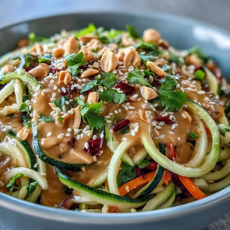 Save Last summer, I was stuck in a cooking rut until my friend texted me a photo of vibrant zucchini noodles glistening under kitchen light. She'd just discovered spiralizing and wouldn't stop raving about it. I made this Thai peanut version that same afternoon, and honestly, the way the creamy dressing clung to those tender zucchini strands while staying light and refreshing felt like a small kitchen revelation. Now it's my go to when I want something that tastes indulgent but leaves me feeling energized, not weighed down.