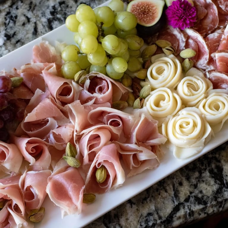 - Take your provolone and carefully roll thin slices into tight spirals, then gently fan out the edges until they resemble blooming roses. This takes patience, but I promise the first time you step back and see those roses, you'll feel like an artist. Work slowly, letting your hands remember the motion. The slight pressure of rolling, the cool cheese beneath your fingertips—this is where the magic starts. Make at least four to six roses depending on your ambition.