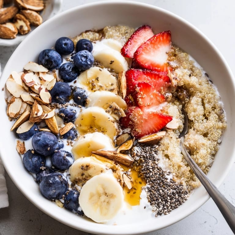 Save My favorite part of this dish is the moment warm quinoa meets cool yogurt transforming simple ingredients into something indulgent My kids love decorating their own bowls which always turns breakfast into a cheerful creative ritual
