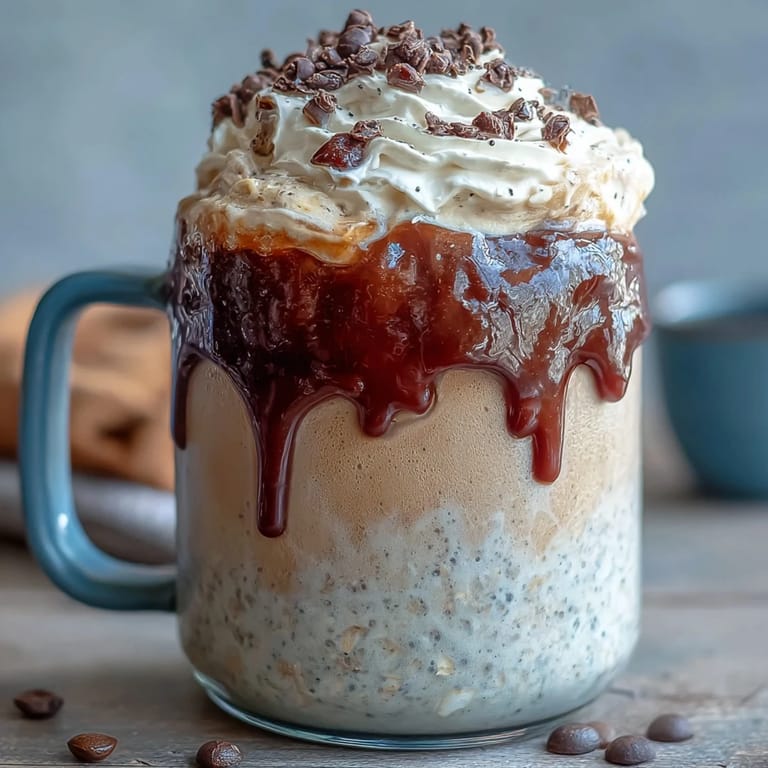 The secret to these overnight oats is the layering technique that creates distinct coffee and vanilla zones in each jar. As the oats soak overnight, they absorb the sweetened espresso and creamy vanilla base, transforming into a pudding-like texture that's incredibly satisfying. The chia seeds add extra nutrition and help create that thick, spoonable consistency, while the vanilla bean delivers authentic coffeehouse flavor. Top it all off with a cloud of whipped cream and optional chocolate chips, and you have a breakfast that feels like dessert but fuels you through your morning.